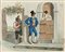 Lotto composto da due acquerelli del secolo XIX raffiguranti banditore di...