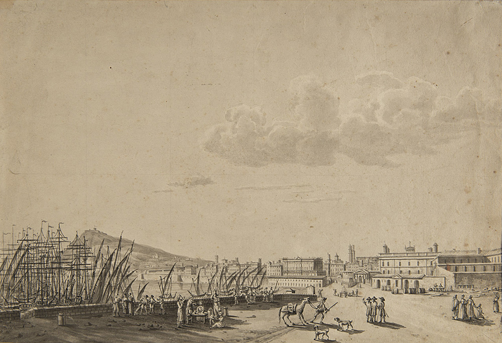 19th-century master "View of Naples" monochrome watercolour on paper (mm 250x360)