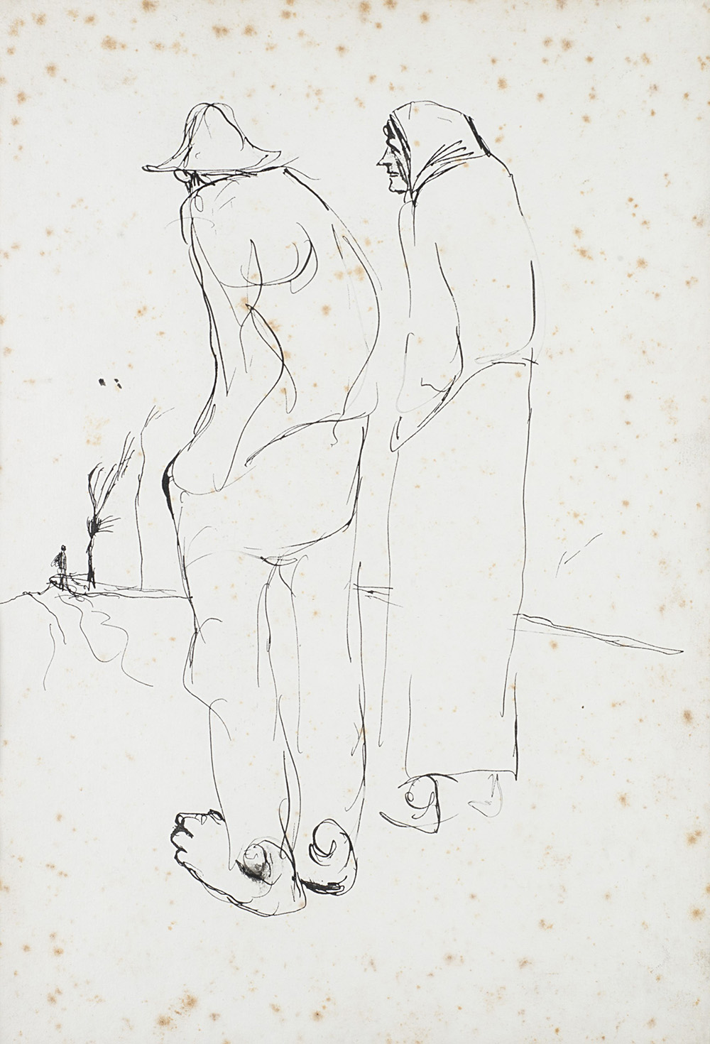 "Figures" ink on paper (mm 400x290) framed; authenticated by Renato Santini on verso (defects)