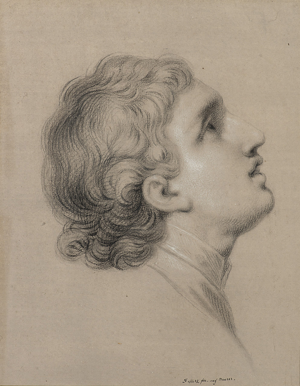 19th-century master "Profile of a man" black chalk on paper heightened with white chalk on prepared paper, inscribed bottom right (mm 320x260) Framed