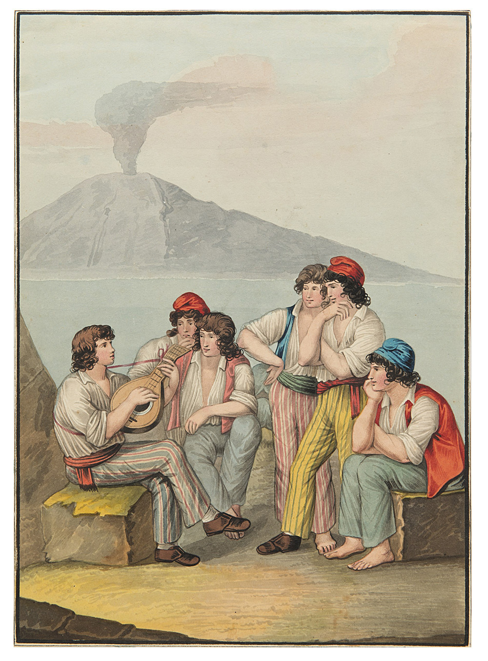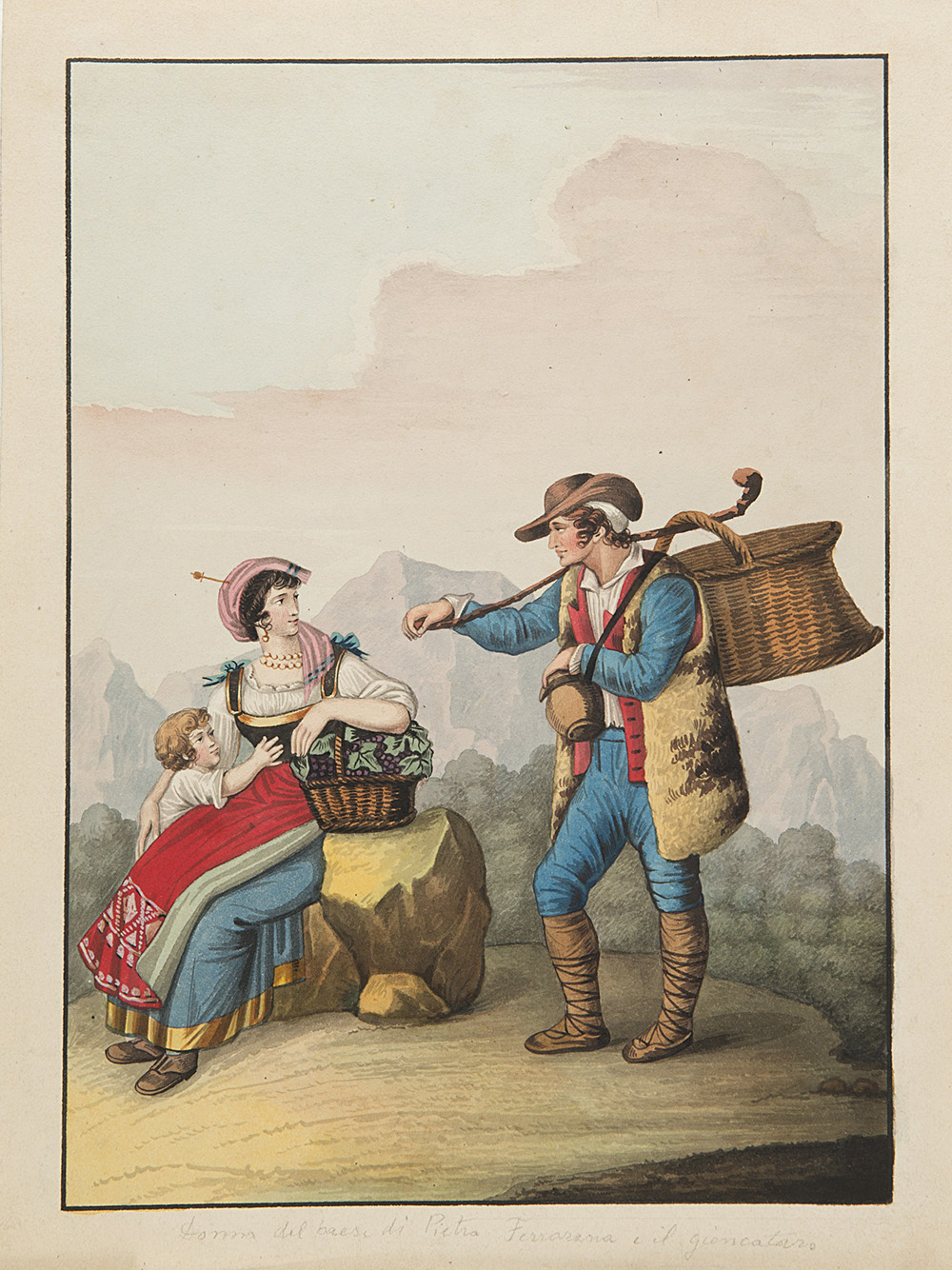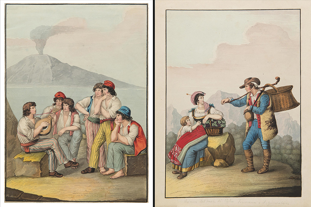 19th-century Neapolitan school. Two watercolours by different authors depicting life scenes