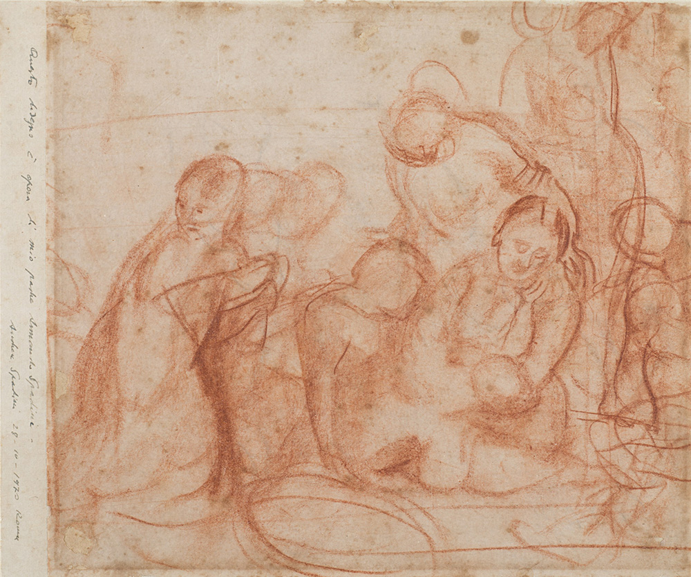 "Adoration of the Child" red chalk on paper (mm 180x215) authenticated by the artist's son, Andrea Spadini. Framed (defects)