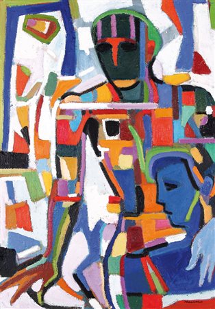 PASQUALE MONACO Napoli 13/08/1948 Reale - Futura (nata del suo contrario) - Non visibile olio su tela cm. 100x70, firma in basso a destra, titolo e firma al retro, dichiarazione d'autenticità e timbro dell'artista su foto, opera senza cornice.