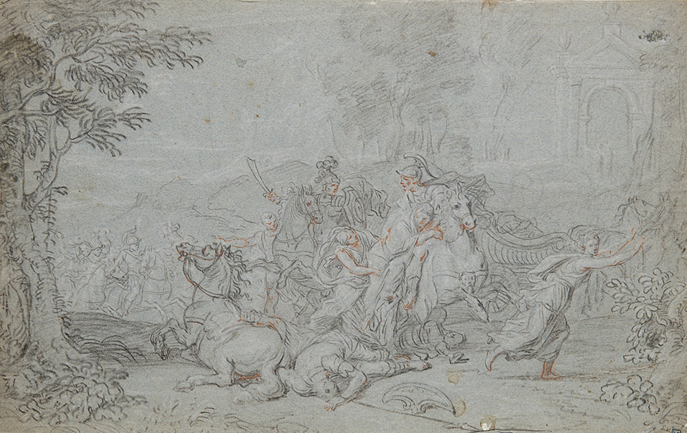 "A scene from Classical Mythology" drawing on paper in red and black chalk, hightened white lead (mm 439x281) (defects)