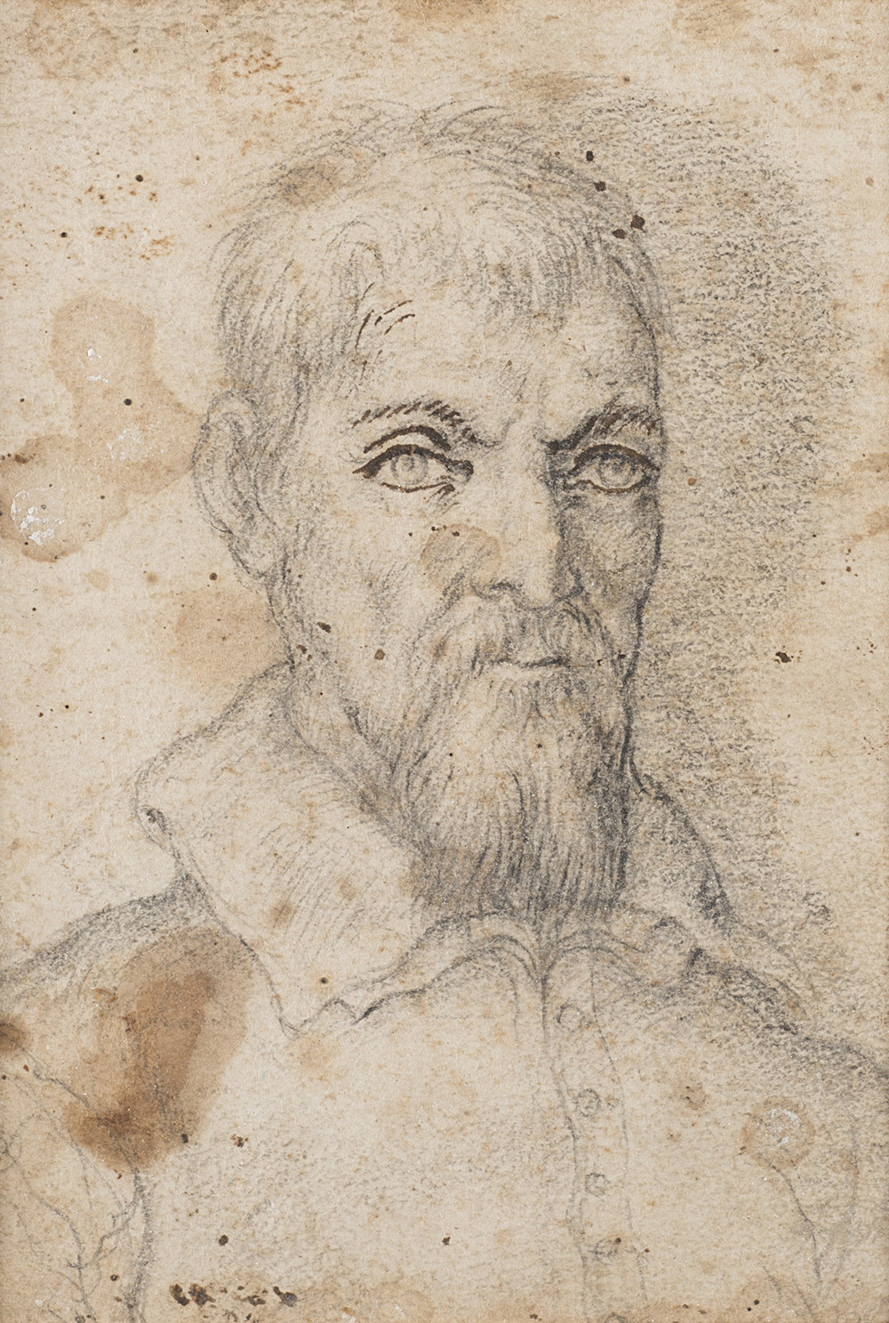 Early 17th-century artist "Male portrait" black chalk and touches in pen and brown ink on paper (mm 132x95) in a 19th-century frame (defects)