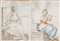 Artista del secolo XVIII. Due disegni raffiguranti donne con strumenti...