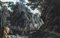 18th-century school "Landscape with waterfall and figures" tempera on paper (mm 500x660) Framed (defects)