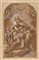 Scuola bolognese, inizio secolo XVII "Trinità" penna e inchiostro bruno acquerellato in bruno, rialzi a biacca su carta nocciola, foglio centinato (mm 450x275) (difetti e restauri, controfondato)