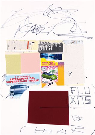 GIUSEPPE CHIARI Firenze 26/09/1926 - Firenze 10/05/2007 Senza titolo, anni '90 collage e tecnica mista su carta cm. 68,7x48,7; firma in basso al centro, opera registrata presso l'Archivio Giuseppe Chiari come da dichiarazione su foto.