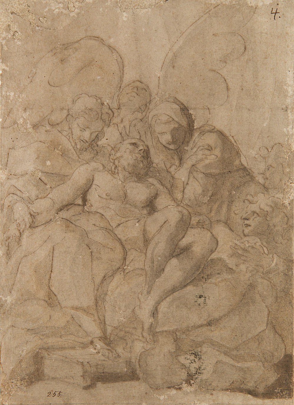 "La Deposizione" disegno su carta a penna, inchiostro e acquerello (mm 227x168) (difetti)