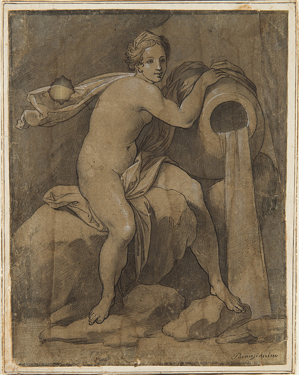 Early 17th-century artist "Allegory of water" pen, brown ink, brown wash, heightened with white (mm 260x200) (defects)