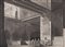 Scenografo dell'inizio del secolo XIX "Figure in un androne con balconata" penna e inchiostro nero acquerellato in grigio (mm 198x280) In cornice