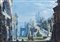 Scenografo del secolo XIX "Veduta notturna di palazzi neogotici" acquerelli e tempera (mm 423x595) In cornice