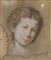 Scuola del secolo XVIII "Ritratto di fanciulla" matita e pastelli su carta originariamente azzurra. Filigrana indistinta (mm 330x280) (difetti e mancanze)