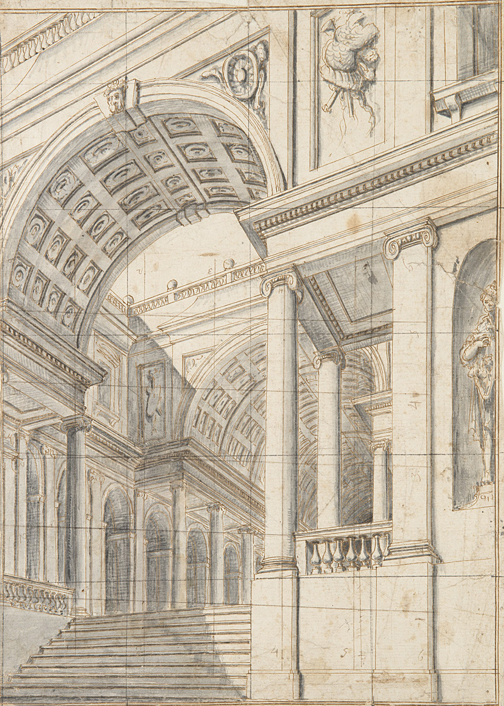 "Capriccio architettonico" penna, inchiostro e acquerello (mm 407x239) (difetti)