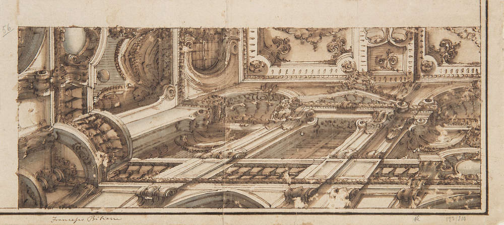 (attributed) "A prospective study" pen, brown ink and watercolour (mm 154x240) with inscription "Francesco Bibiena" (defects and losses)