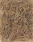 Scuola di Praga, fine secolo XVI "Sacra Famiglia con San Giovannino e Santi" pennello con inchiostro bruno acquerellato in bruno su carta bruna (mm 183x146) Inscritto a matita "Parmigianino" al verso (gravi difetti)