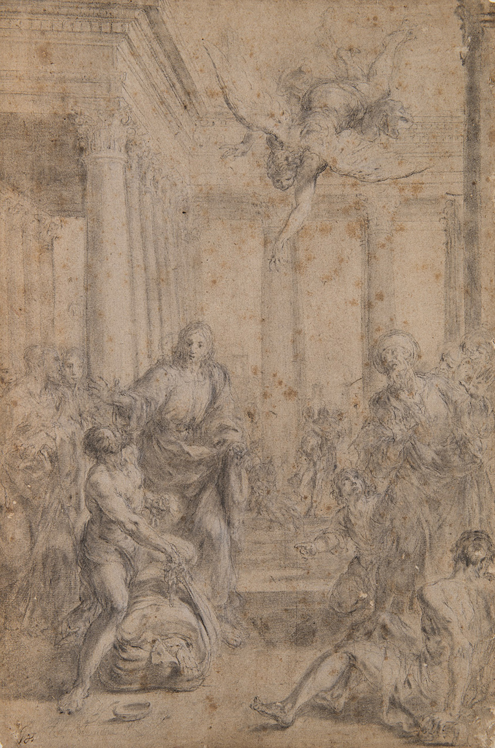 "Christ at the fountain of Bethesda" black chalk and white lead (mm 415x280) (defects)