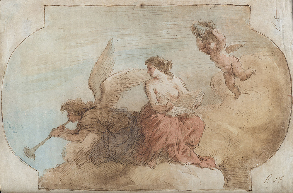 (attr.) "Scena allegorica" penna, inchiostro bruno con acquerelli colorati su carta, filigrana indistinta (mm 212x318)