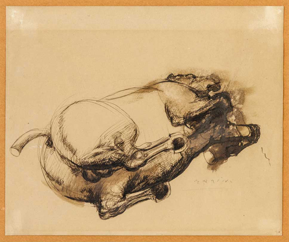 MARINO MARINI (1901 - 1980) Cavallo 1930 c. Disegno, china e tempera su carta 21,2 x 25,7 cm Firmato in basso a destra Autentica rilasciata dalla Fondazione Marino Marini con il n. 587 il 16/03/2010 PROVENIENZA: Collezione privata, Lecco