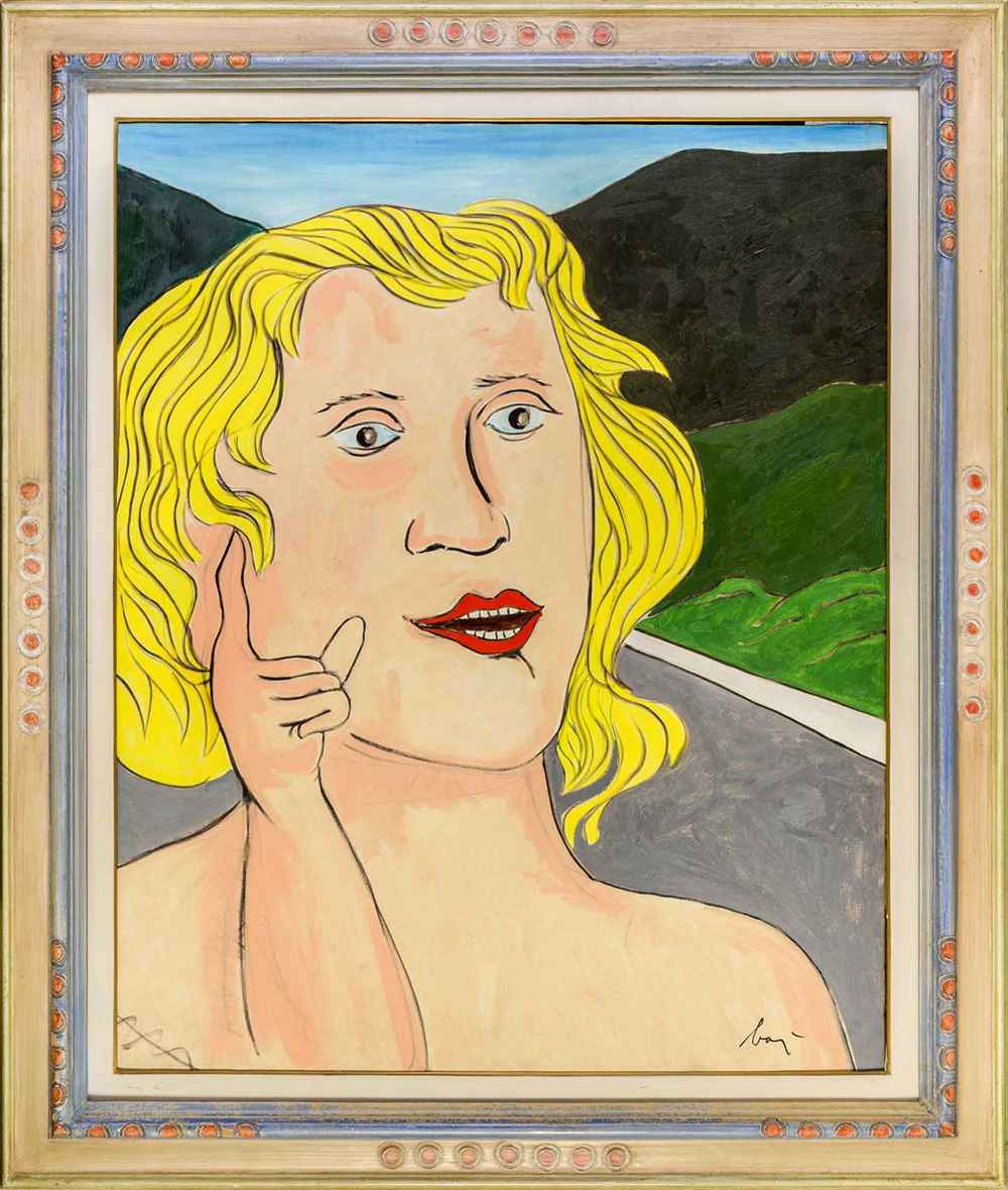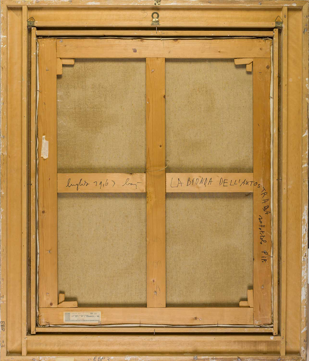 ENRICO BAJ (1924 - 2003) La bionda dell'autostrada 1963 Olio su tela 99 x 81 cm Firmata in basso a destra Data, firma e titolo al retro PROVENIENZA: Galleria Schwarz, Milano (etichetta al retro) Collezione privata, Milano BIBLIOGRAFIA: E. Crispolti, 'Catalogo generale Bolaffi dell'opera di Enrico Baj', Giulio Bolaffi Editore, Torino, 1973, n. 911, p. 136 (ill.)