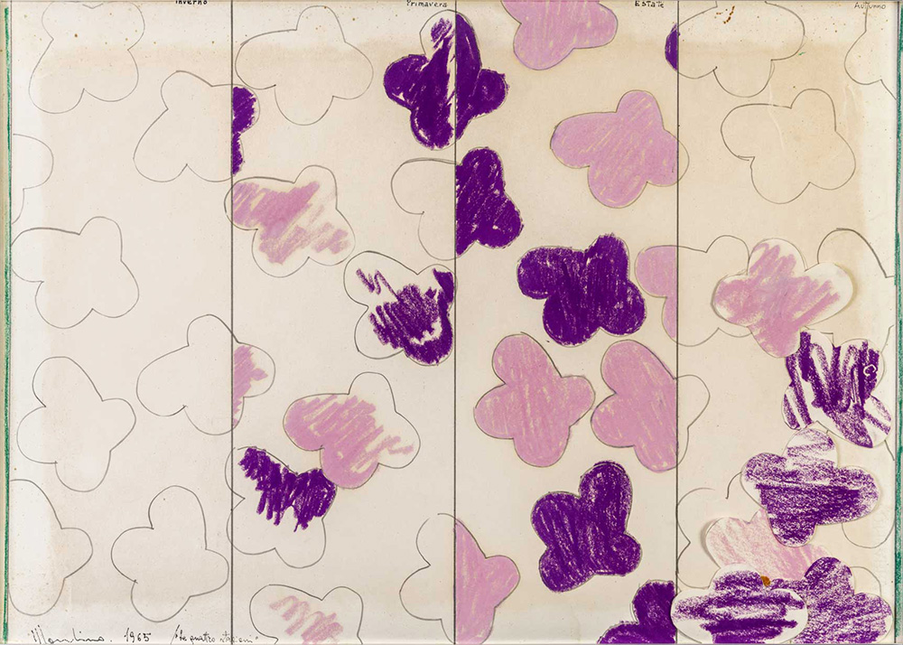 ALDO MONDINO (1938 - 2005) Quattro stagioni 1965 Tecnica mista su carta 49 x...