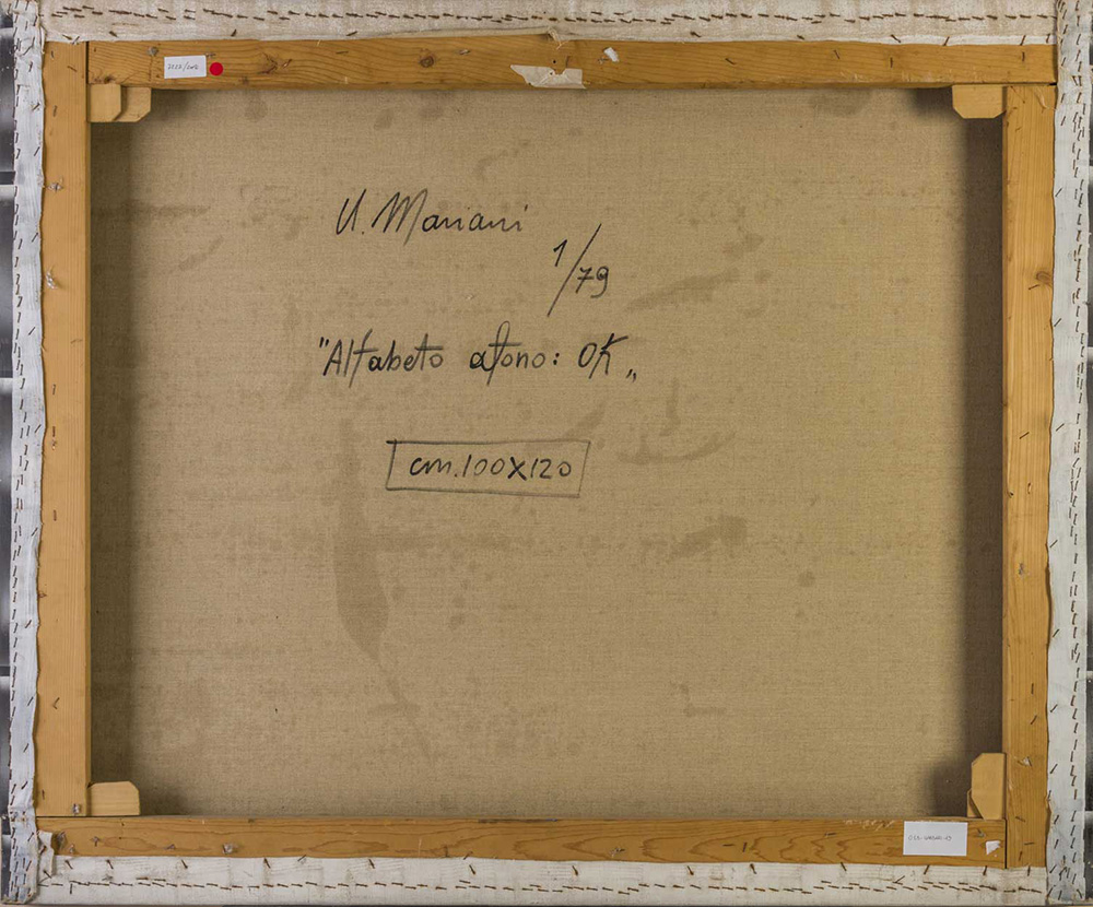 UMBERTO MARIANI (1936) Alfabeto afono: Ok 1979 Acrilico su tela 100 x 120 cm...