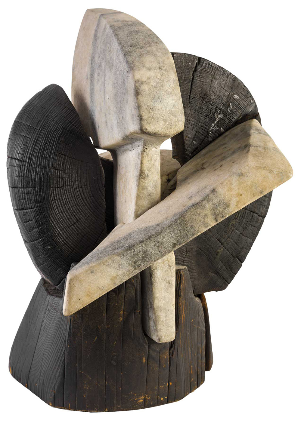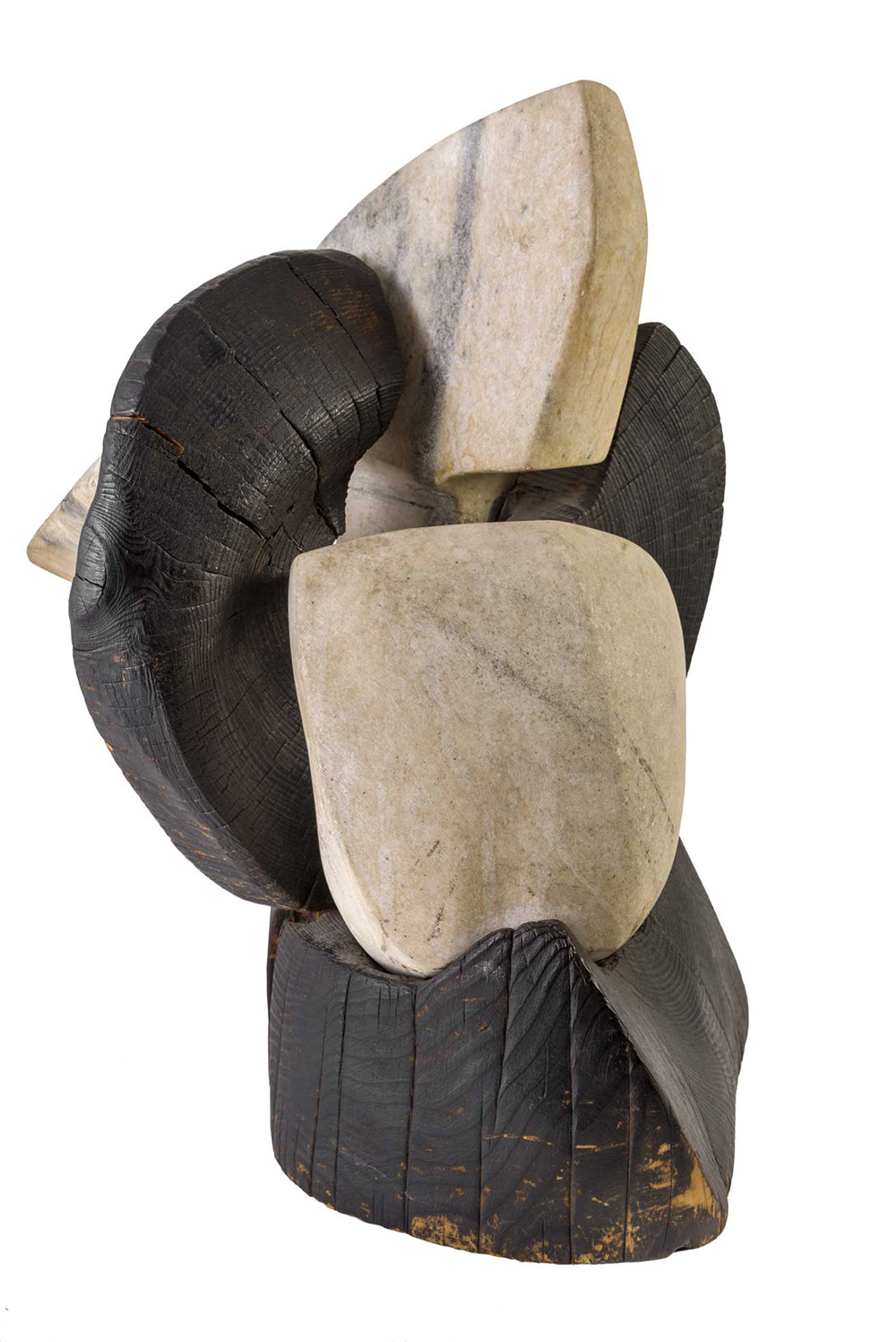 GIANCARLO SANGREGORIO (1925 - 2013) Senza titolo Anni '80 Scultura in legno e marmo 49 x 35 x 33 cm Firmato al lato PROVENIENZA: Collezione privata, Milano