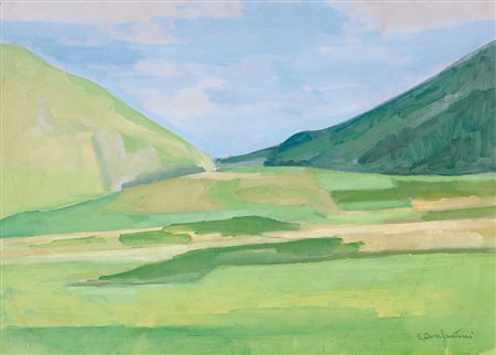 SERGIO BONFANTINI Novara 28/04/1910 - 22/01/1989 Paesaggio, Valle d'Aosta, 1970 tempera su carta applicata su tavola cm. 50x70, firma in basso a destra, etichetta della Galleria d'Arte Rotaross (NO) al retro, Archivio Generale delle opere di Sergio Bonfantini numero 148 a cura della Galleria d'Arte Rotaross (NO) con tecnica e supporto errati e timbro della Galleria d'Arte Annunciata (MI) su foto, pubblicato sul catalogo della mostra "Casorati Bonfantini" tenutasi presso la Galleria Rotaross (NO) dal 11 novembre al 10 dicembre 2006, pagina 41.
