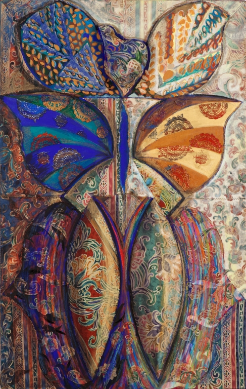 mixed media with aluminum and board inserts on canvas laid on board 48,25x30,70 in