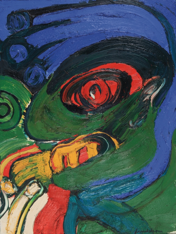 BENGT LINDSTROM (1925-2008) Tète à la main bleu 1971olio su tela cm...