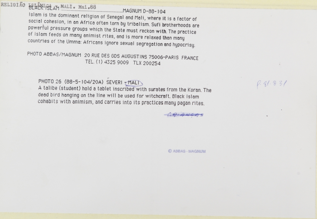 sul retro didascalia dell'immagine e timbro Abbas-Magnum