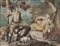 Scuola lombarda del secolo XVIII "Cacciatori" tempera su pergamena (cm...