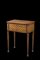 Tavolino da lavoro intarsiato a marqueterie a motivi geometrici. Piano apribile celante vano, fronte a due cassetti, gambe rastremate unite da scarpette in bronzo. Secolo XIX (cm 62x80x42)