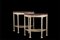 Coppia di consolles a mezzaluna in legno laccato e argentato con fascia e...
