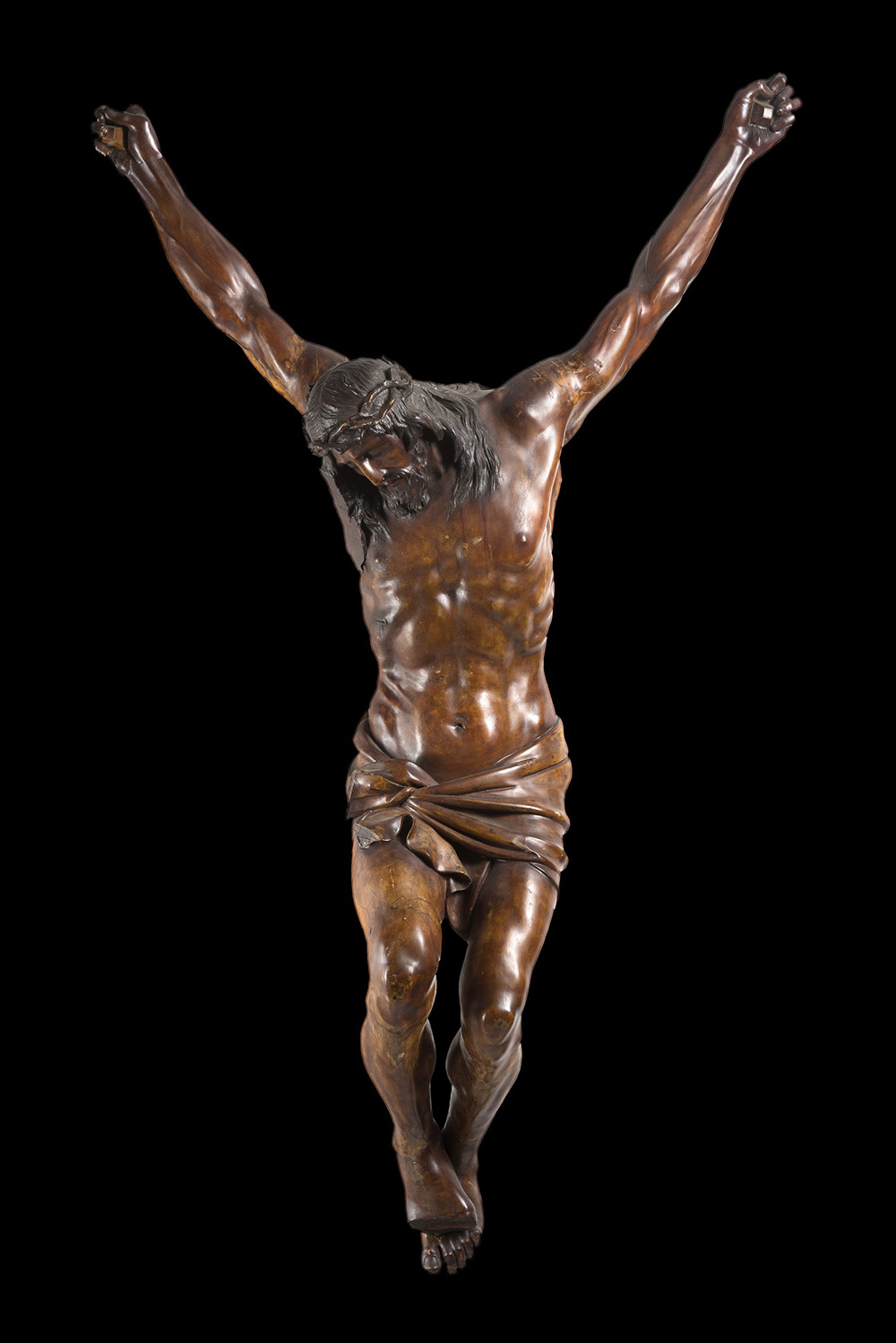 19th-century art "Crucified Christ" lacquered wooden sculpture (h. cm 130) (defects)
