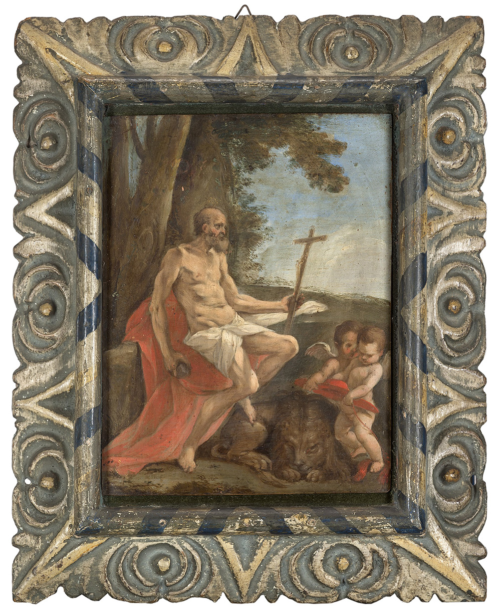 Scuola del secolo XVIISan Gerolamoolio su rame cm 21,5x16,4 in cornice in...