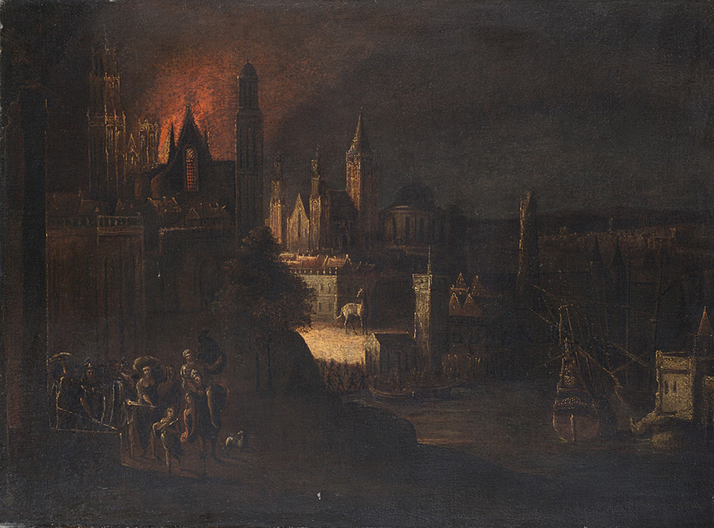 Cerchia di François Nomé, secolo XVIIEnea fugge dall'incendio di Troiaolio su...