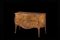 Commode lastronata in noce e legni vari di forma mossa con fronte a due...
