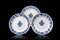 Manifattura di Lodi, secolo XVIII. Gruppo di tre piatti in maiolica a bordo liscio decorati in monocromia blu alla 'Rouen' con un bouquet floreale al centro e sulla bordura a motivi stilizzati (d. cm 23) (difetti)