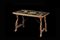 Tavolo con piano in scagliola decorato in policromia a carte da gioco sparse. Base in legno con gambe a lira riunite da traversa in ferro. Secolo XVII (cm 130x80x75) (difetti e restauri)