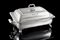 A silver tureen with cover. London, 1809, Paul Storr (attr.) (cm 31x22.5) (g 2087 ca.); combined with warmer in Old Sheffield Plate (minor defects)