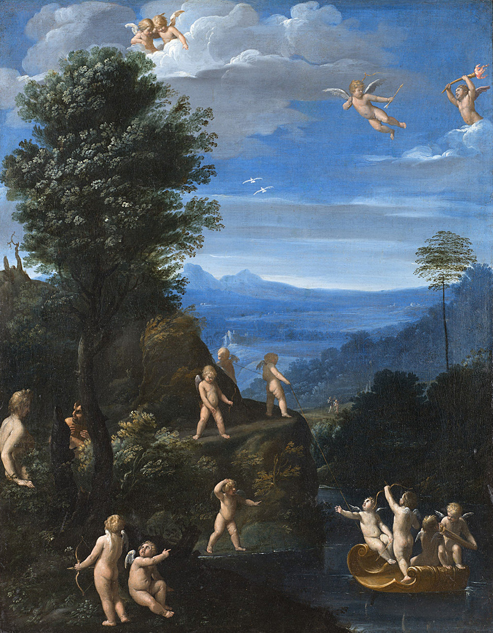 Lot 924 | Cerchia di Francesco AlbaniPutti in un paesaggioolio su tela cm 77x60...