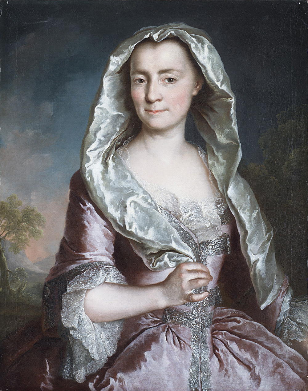 Maestro francese del secolo XVIIIDama con veste rosa e veloolio su tela cm...