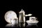 Servizio in custodia composto da una cioccolatiera in argento dorato a corpo...