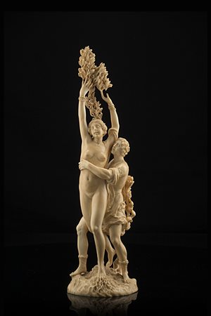 Artista nord europeo, secolo XVIII "Apollo e Dafne" grande scultura in avorio (h. cm 41) attribuito a Peter Hencke. Siglato P. H. e datato 1761 alla base (difetti)