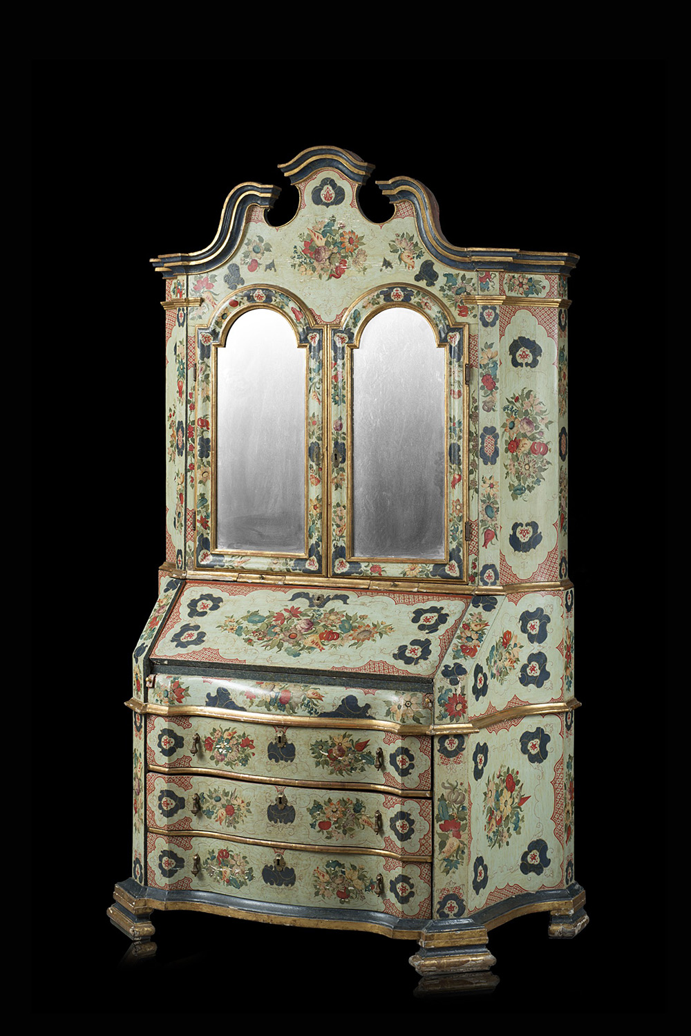 A lacquered bureau-cabinet. Venice, 18th century (cm 139,5x238,5x66,5) (defects and restorations)