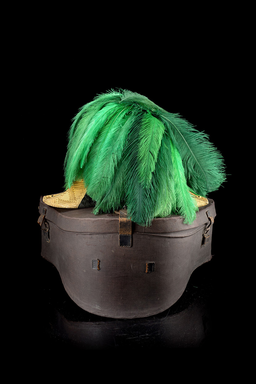 Importante feluca da Generale, Impero Austro-Ungarico, fine sec. XIX. Completa delle piume originali e della scatola di trasporto originale (lievi difetti)
