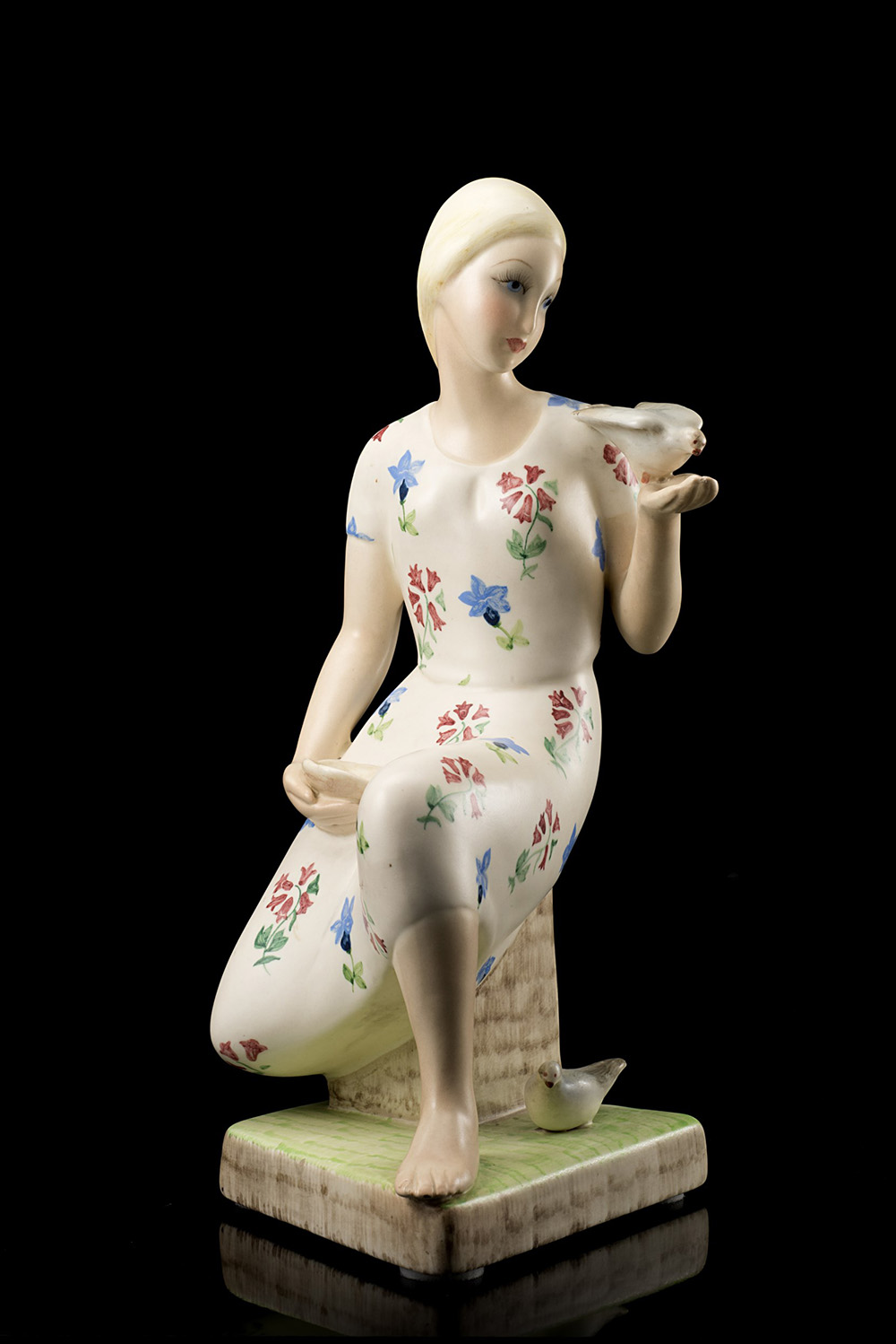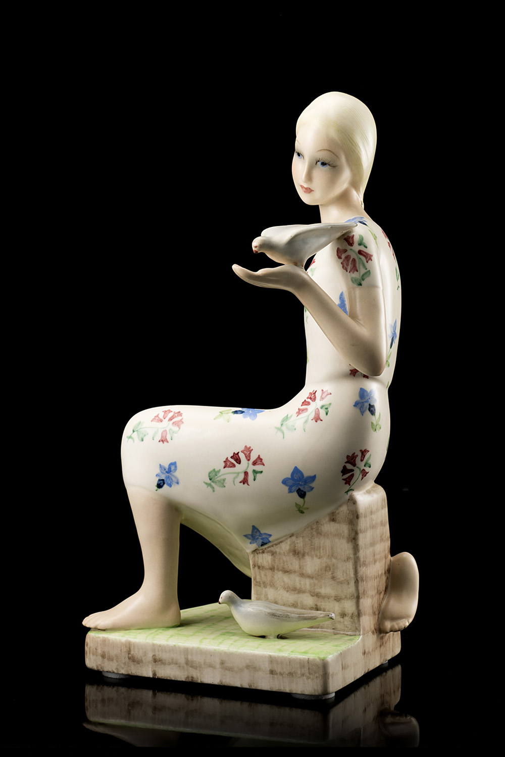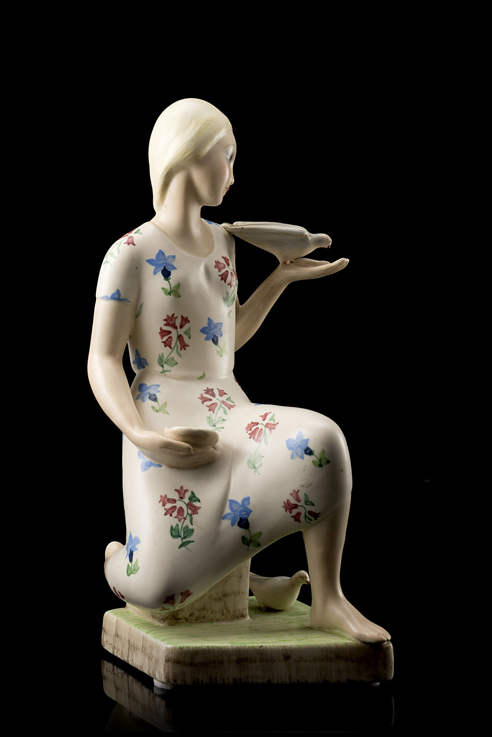 Scultura in ceramica formata a colaggio e smaltata in policromia opaca. Torino, anni '30. Recante firma "FORMICA" incisa alla base, titolata e marcata con il monogramma della manifattura sotto la base. (h cm 34) (lievi difetti e restauri)