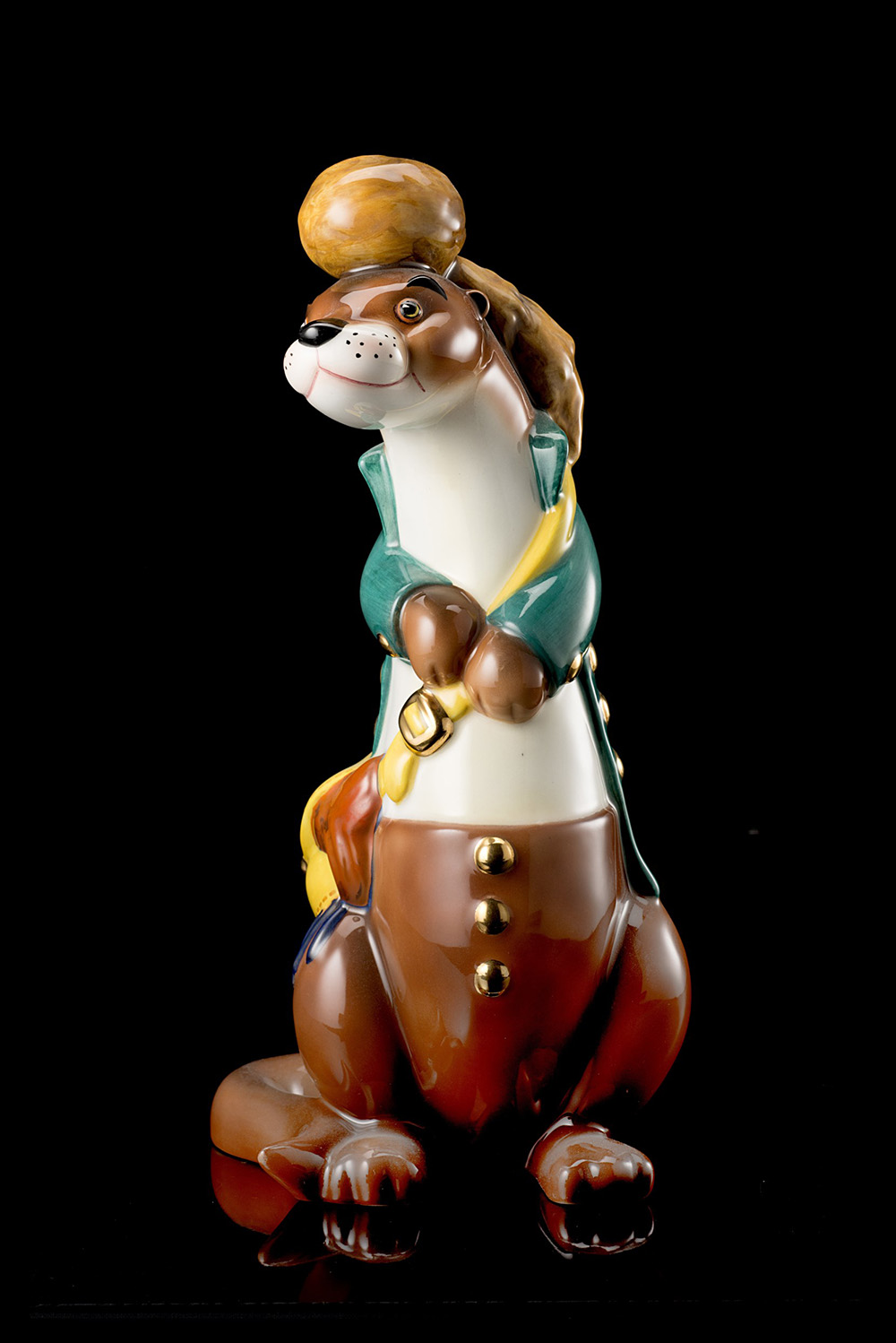 Lenci "Lontra pescatrice"Ceramica formata a colaggio e smaltata in policromia...